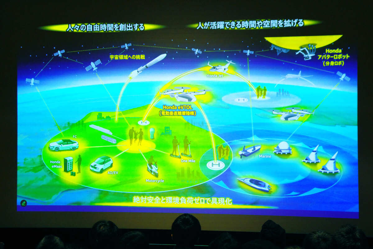 月の裏側にいるアバターロボット(分身ロボ)を操作するなど、ロボティクスも含めてそんな世の中になるだろう、そんな世界観を持ってクルマやバイク以外の新しいモビリティもやっていこうじゃないかということでした。