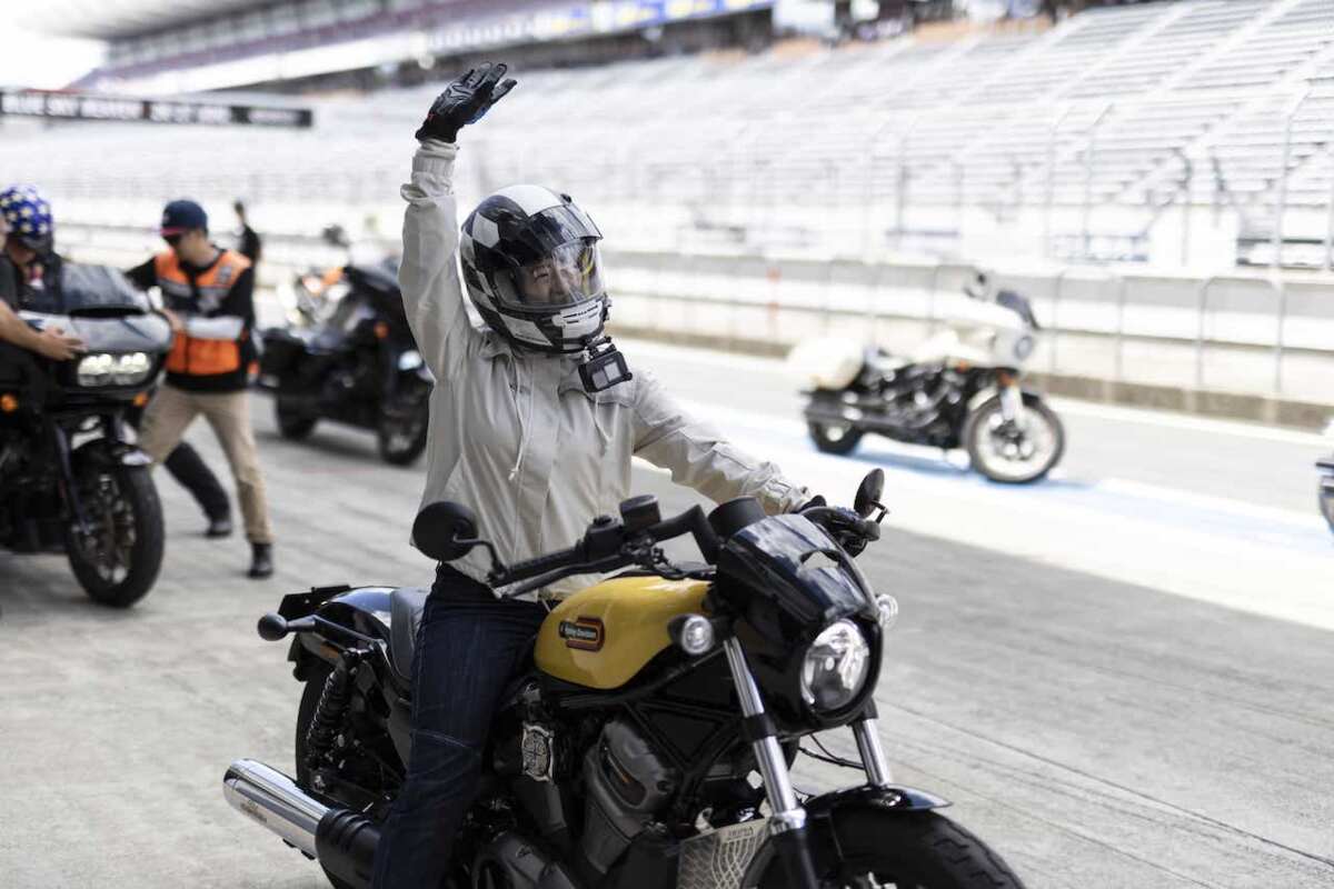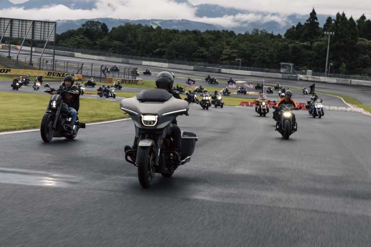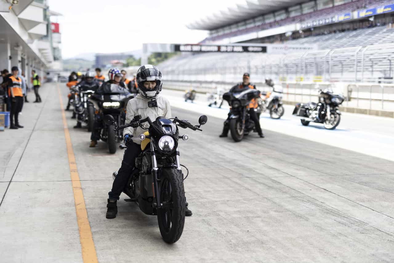 ハーレーの最新モデルに乗れる試乗会は、参加者400人と大規模。走行できるのは、なんと富士スピードウェイの本コースとスケールも破格。
