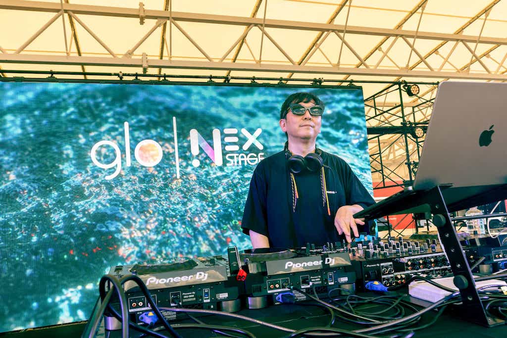 まずは“歌うDJ”として幅広い世代に親しまれている「YonYon」(よんよん)で、いきなりステージはヒートアップ! どこか聴きやすく、かつ踊れる、エッジの利いたサウンドで多彩なBPMを縦横無尽にプレイしていただきました。