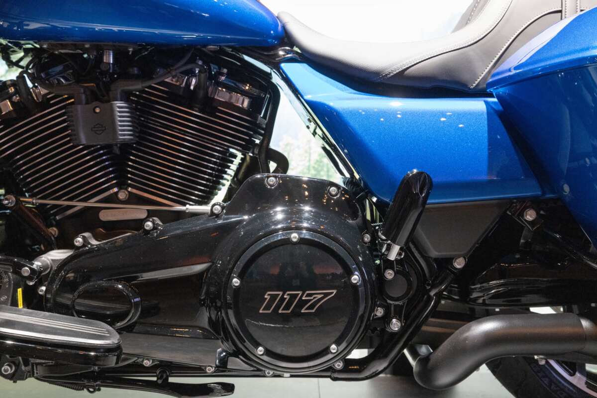 搭載されるエンジンは、排気量1923ccの「ミルウォーキーエイト117」。伝統のV型2気筒エンジンは熱対策をしなければならない排気バルブまわりのみにウォーターラインを設けた空水冷式で、シリンダーヘッドに刻まれる冷却フィンやボア・ストロークを103.5×114.3mmとするロングストローク設計、トラディショナルなOHV方式、別体式トランスミッションは今なお受け継がれています。