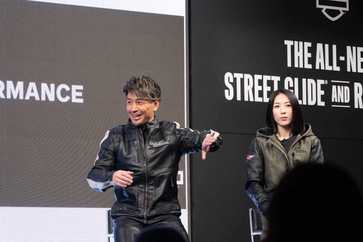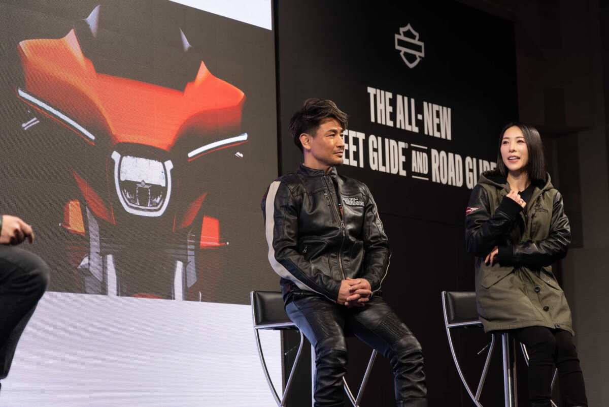 ▲女優の矢沢心さんが、ハーレーダビッドソン ジャパンの報道向け新車発表会でおこなわれたH-D グランドアメリカンツーリング トークセッションに、元K-1世界王者の魔裟斗さんとともにご夫妻で登場。《画像提供:ハーレーダビッドソン ジャパン》