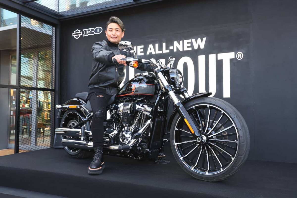 魔裟斗さんは2023年1月にもハーレーダビッドソン ジャパンの新車発表会に登場。そのとき、新発売されるブレイクアウト117を見て「このハーレーに乗れるなら大型二輪免許をとりたい!」と、報道陣の前で高らかに宣言。その後、見事に有言実行し、ブレイクアウト117のオーナーになったのでした。