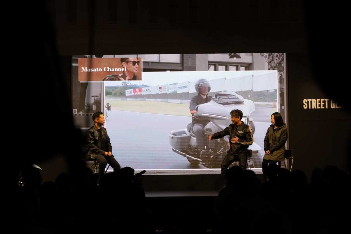 おふたりはステージ上で、タンデムする姿も披露。矢沢心さんとともに、搭載するオーディオシステムの力強いサウンドにも感心するばかりでした。