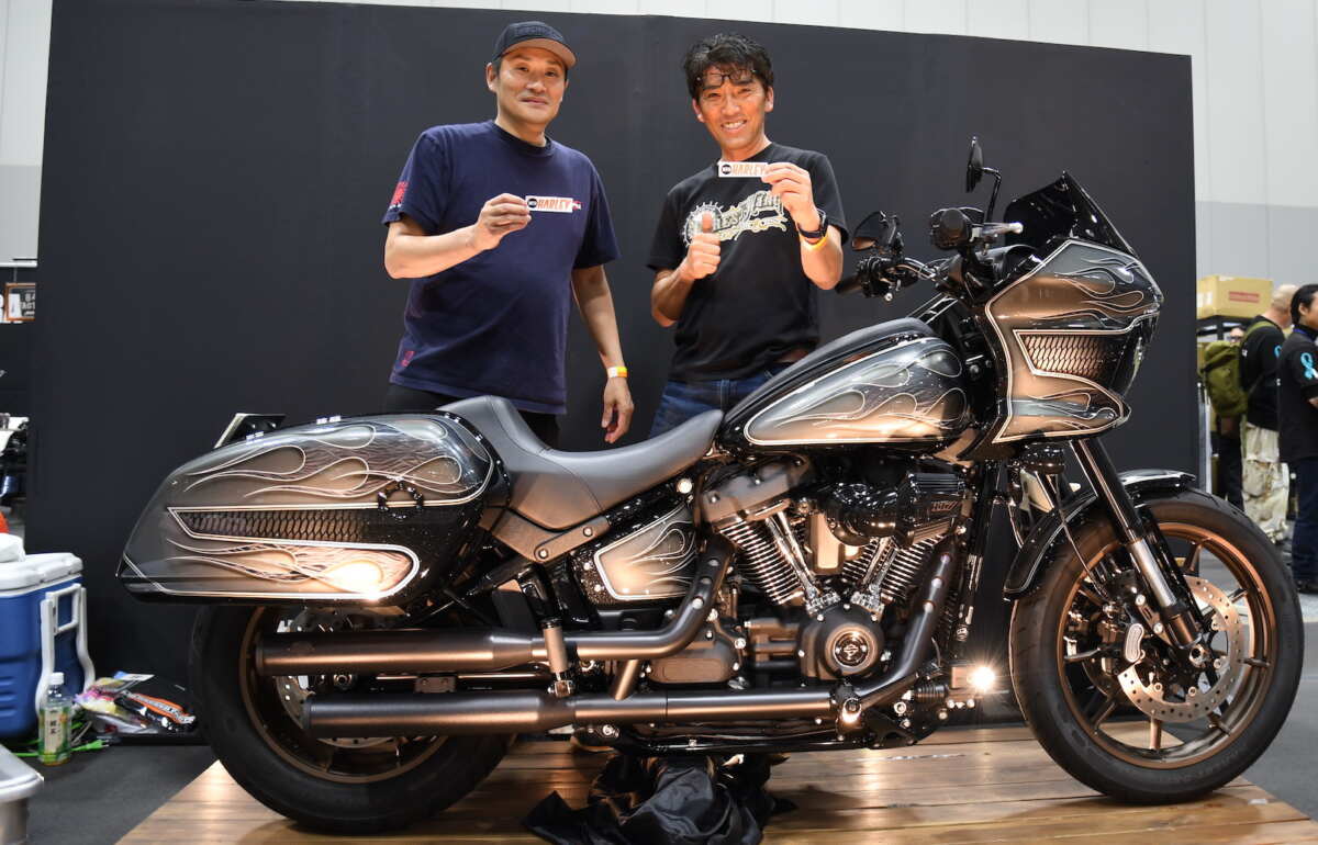 現行モデルや高年式の機種をベースにしたカスタムをフィーチャーしたエリア「JOINTS NEXT」もあり、見応えタップリ。「Forest Wing/フォレストウィング」(愛知県名古屋市)のブースには、ハーレーの最新人気モデル『LOWRIDER ST』が置かれ、見事なまでのフルペイントに来場者らが足を止めて見入ります。