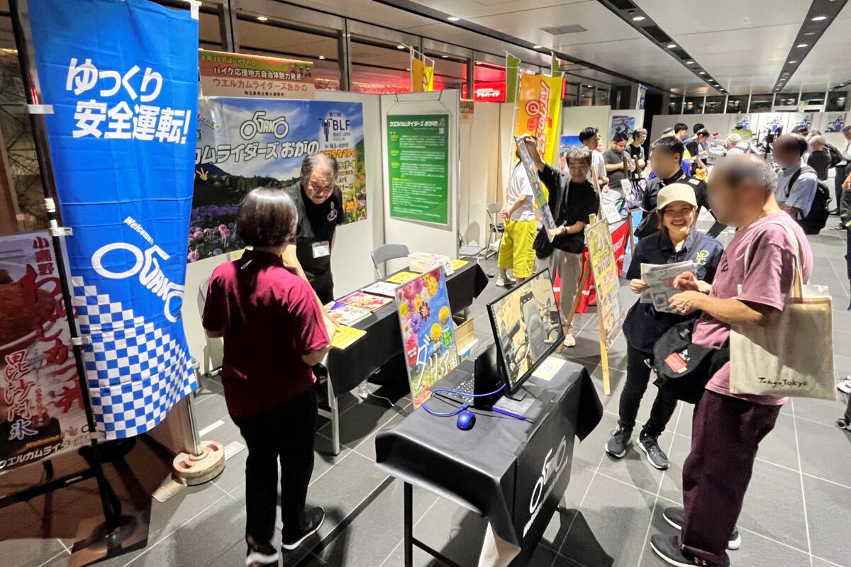 ▲埼玉県小鹿野町などバイク・ライダーウェルカムの自治体による展示も行われ、かなりの人気でした