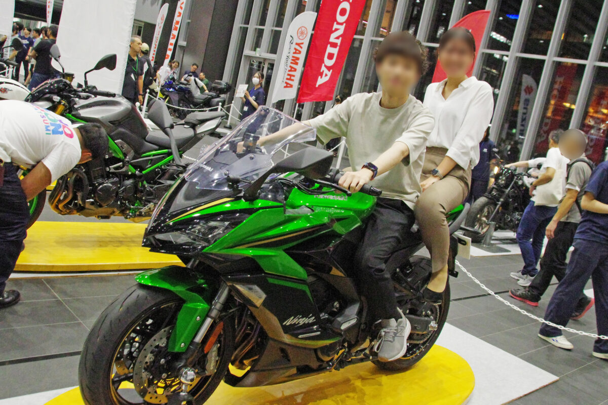 (いいバイクありましたか?という質問に、カワサキ Ninja 1100SX SEを見ながら)やっぱり憧れているのはこういうカウルのついたスポーツバイクで、いつか乗ってみたいなって思います。でも、バイクにはアナログ的な感じとかロマンを求めているので、なんでもかんでも電子化、自動化とかはあんまり興味がないです。メーターもアナログタイプが好きですね。(バイクに乗ったきっかけは?という質問に)もともと両親が乗っていたので、その影響です。