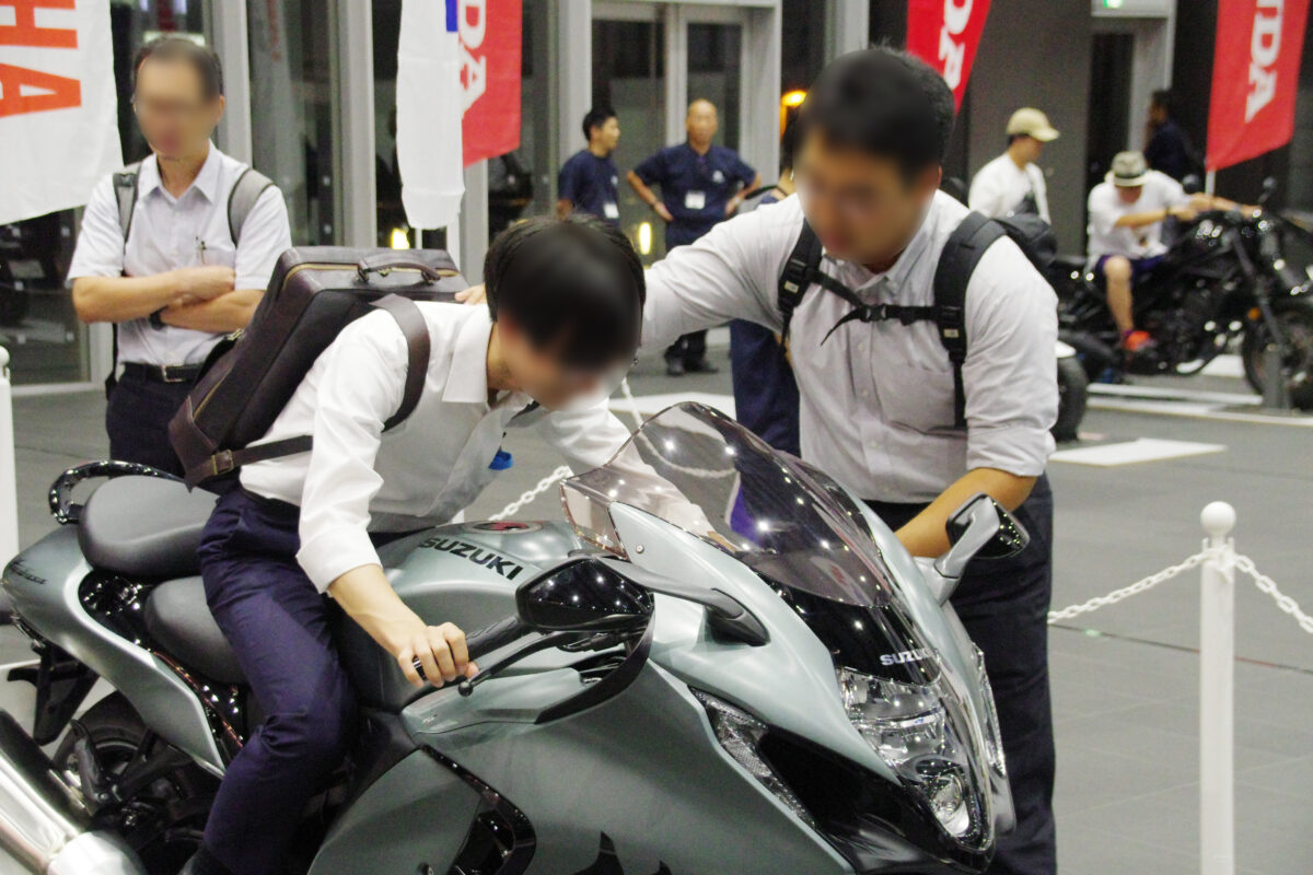 バイクはスズキ ハヤブサ、スズキ DR-Z400SM、ヤマハ セロー250と原付を所有しています。イベントのことは北海道ツーリング中に知って、会社が日本橋で近いので、同じフロアの同僚と来ました。こういうイベントに参加したことがなかったので行ってみようかなと。個人的にはケミカルやヘルメットのメーカーにも出展してほしいかなと思いました。