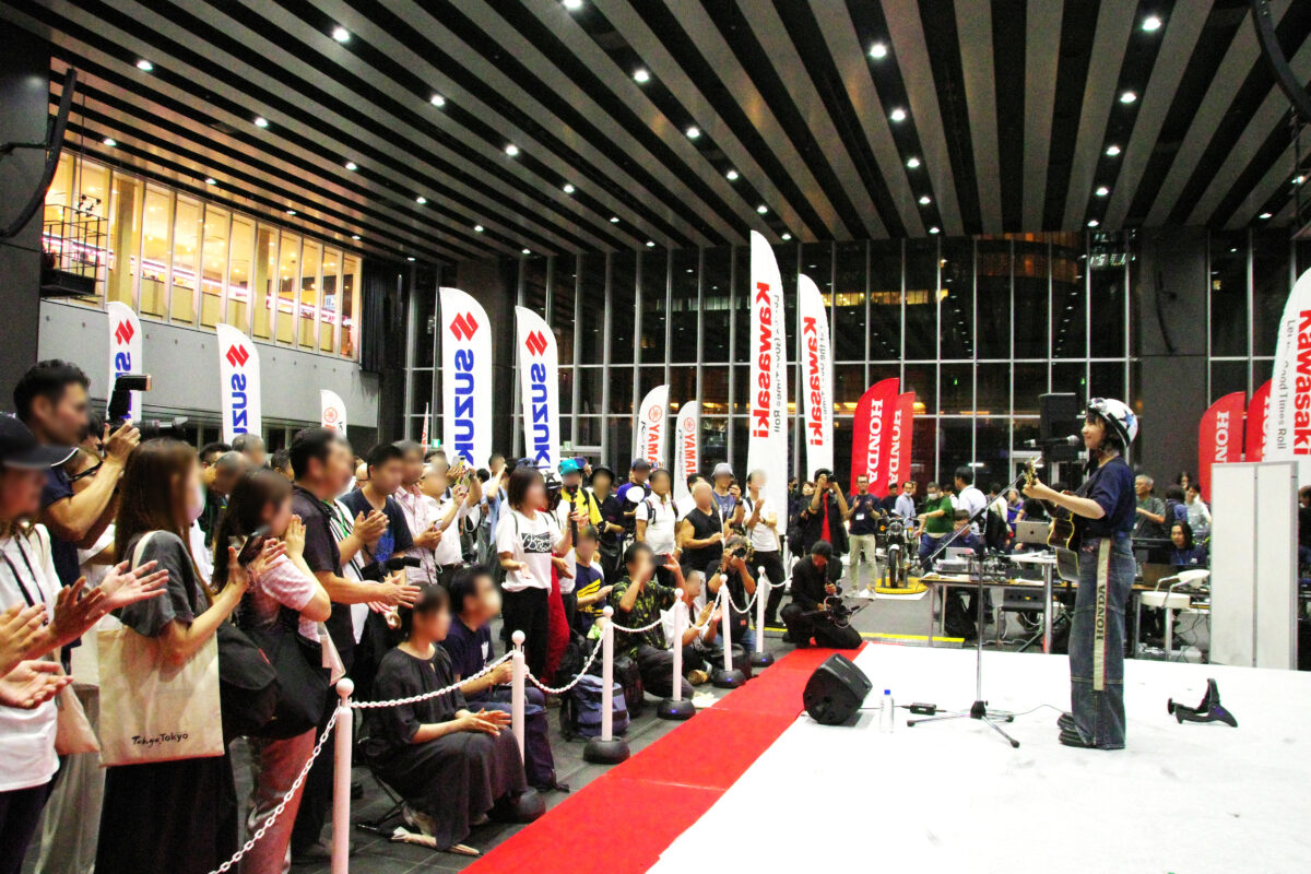 本「バイクの日」イベントは毎年同日に開催されていますが、今年のイベントがいつもと違ったのは夜遅くまで行われていたということ。これまでは夕方5時くらいには終わっていたのですが、今年はステージイベントにも昼の部と夜の部が設定されて、日が落ちて暗くなってもまだ盛り上がりを見せました。