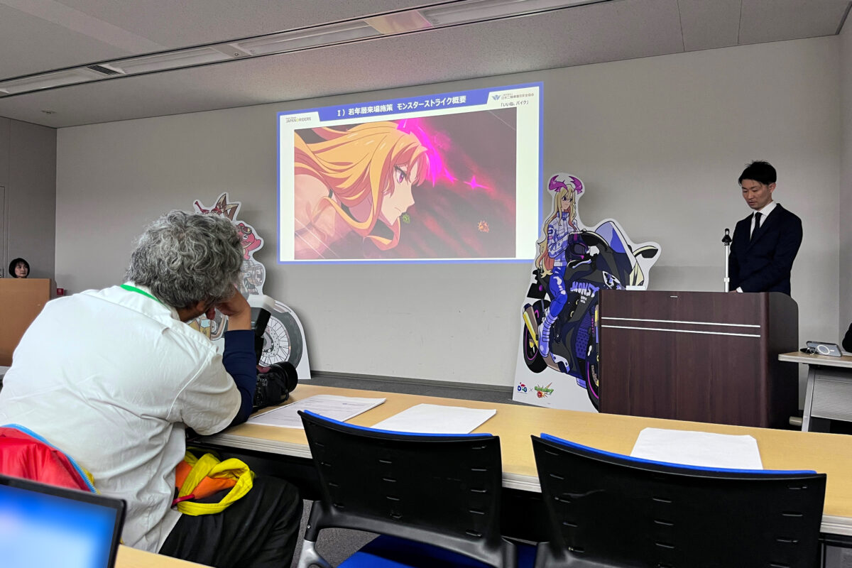 ▲二輪メディアが集まるなかでアニメ見たの初めてかも… 業界が変わりつつあることを実感!