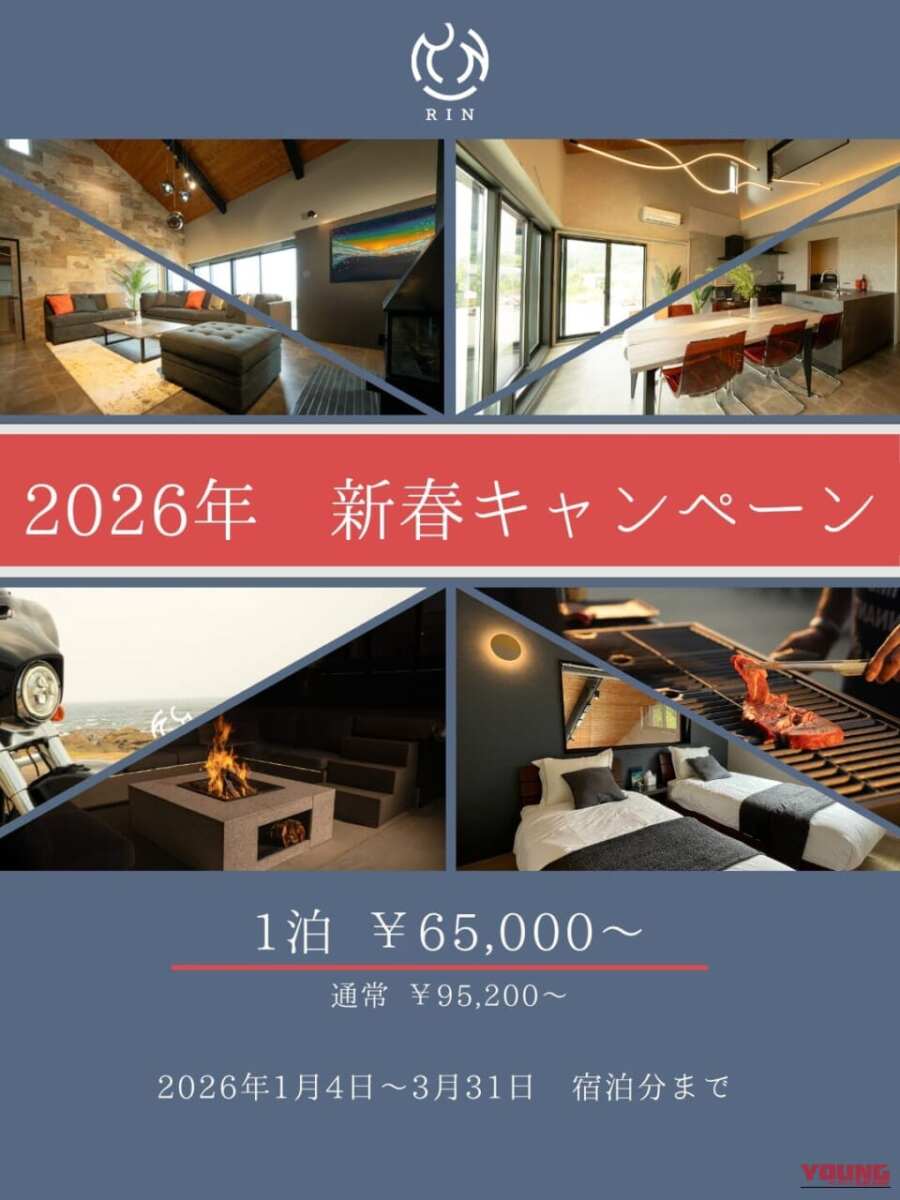 現在、RINではオープンを記念した新春キャンペーンを実施している。2026年3月31日宿泊分まで、通常1泊9万5200円からの料金が、6万5000円から(税込、食事別)となっている。