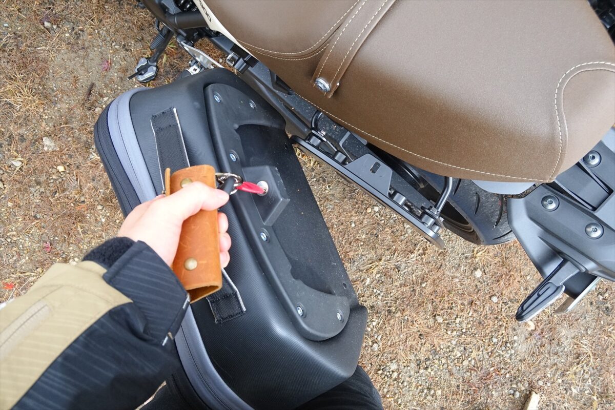 カメラや三脚をサイドバッグに入れてツーリングに出かけ、写真を撮影するタイミングだけバッグを外すことで、車体の美しさを引き立てた写真が撮れるのです。