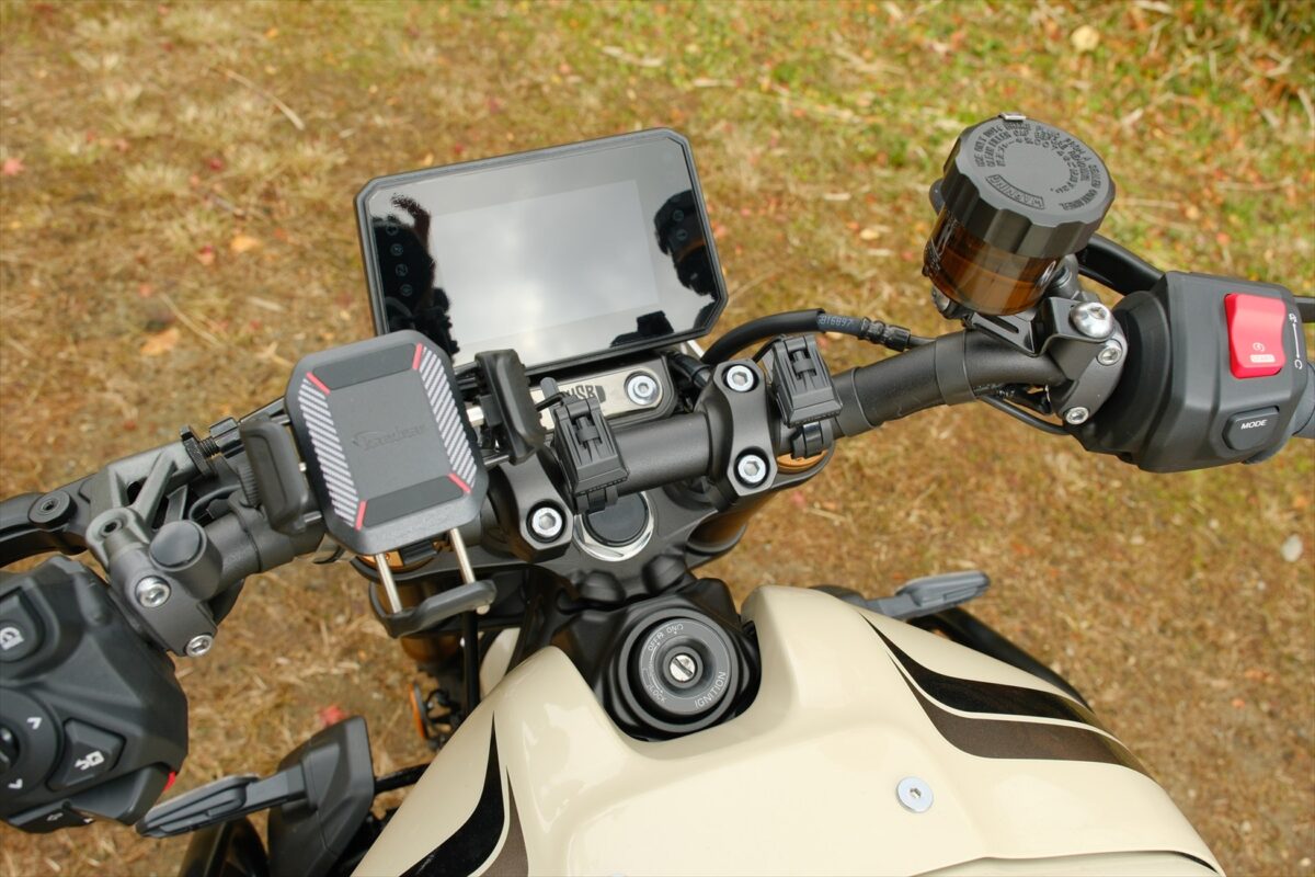 XSR900には専用アプリ『Garmin StreetCross(ガーミンストリートクロス)』でメーターにナビを表示する機能がありますが、普段使っているナビアプリを使いたかったため、スマホホルダーを導入しました。