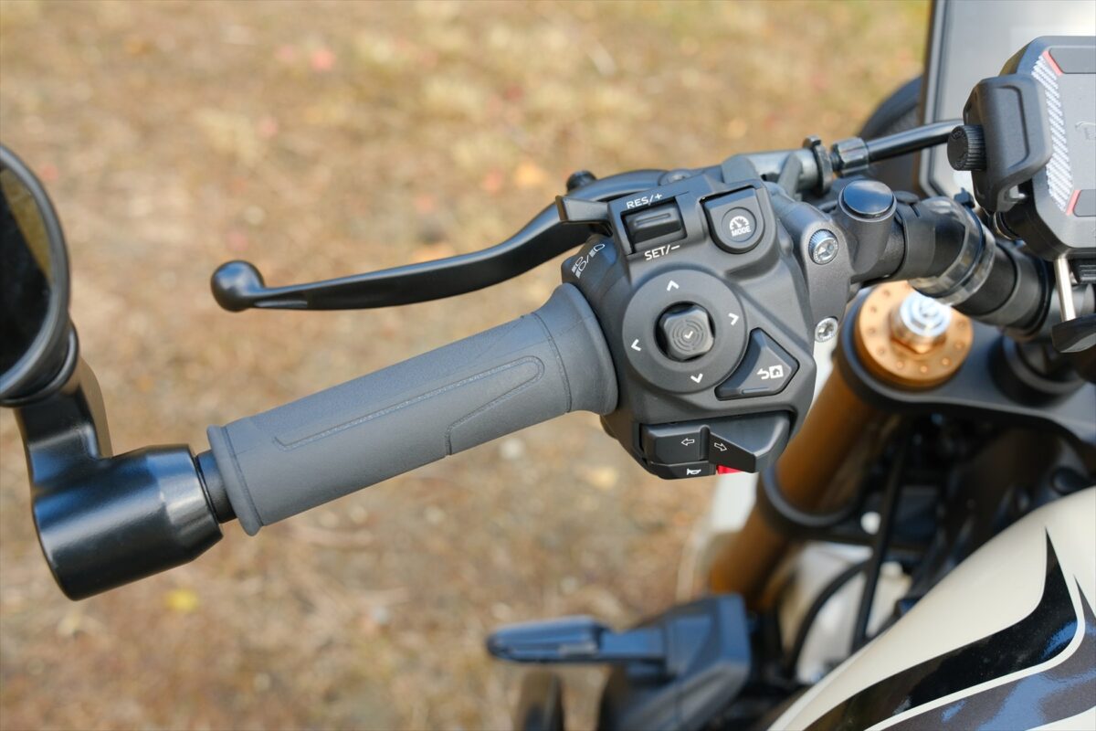 純正スイッチはグローブ越しでも押しやすく、ディスプレイの表示も見やすいため押し間違いがありません。