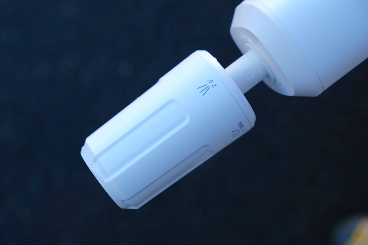 切り替えの際は噴射しながら背面のスイッチを押すのですが、現在の強さの表示がないため、噴射している水を直接見て判断する必要があります。