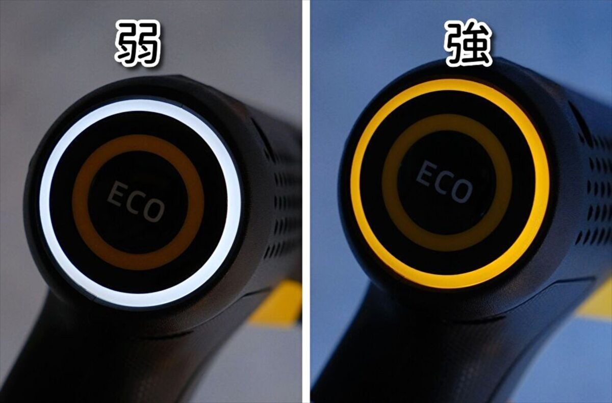 一方ケルヒャーは、弱・強の2段階。背面のLEDランプの色で判断できる点がわかりやすかったです。