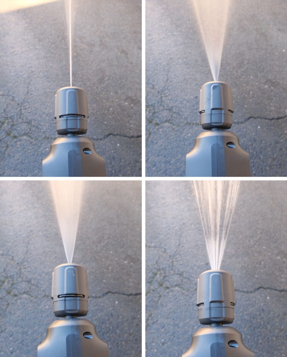 続いてスパイサーは、ノズルを回すことでポイントジェット・傾斜・標準幅広・シャワーという4パターンの噴射が可能です。