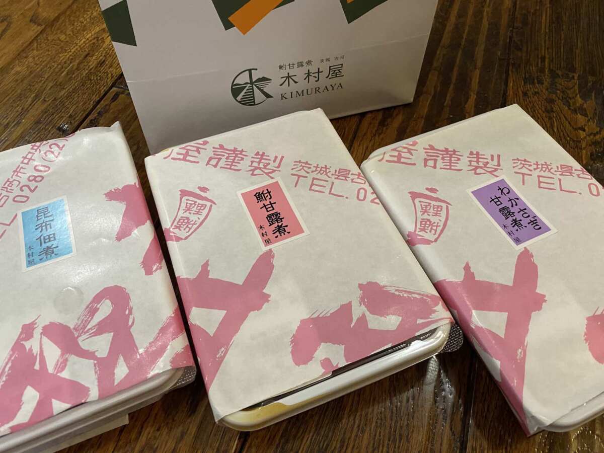 『鮒の甘露煮』は大きなサイズでも軟らかく、骨まで丸ごと食べられます。帰宅後、ボクはビールやお酒と一緒に味わいました。妻や子どもには、昆布の佃煮の評判が良かったです。