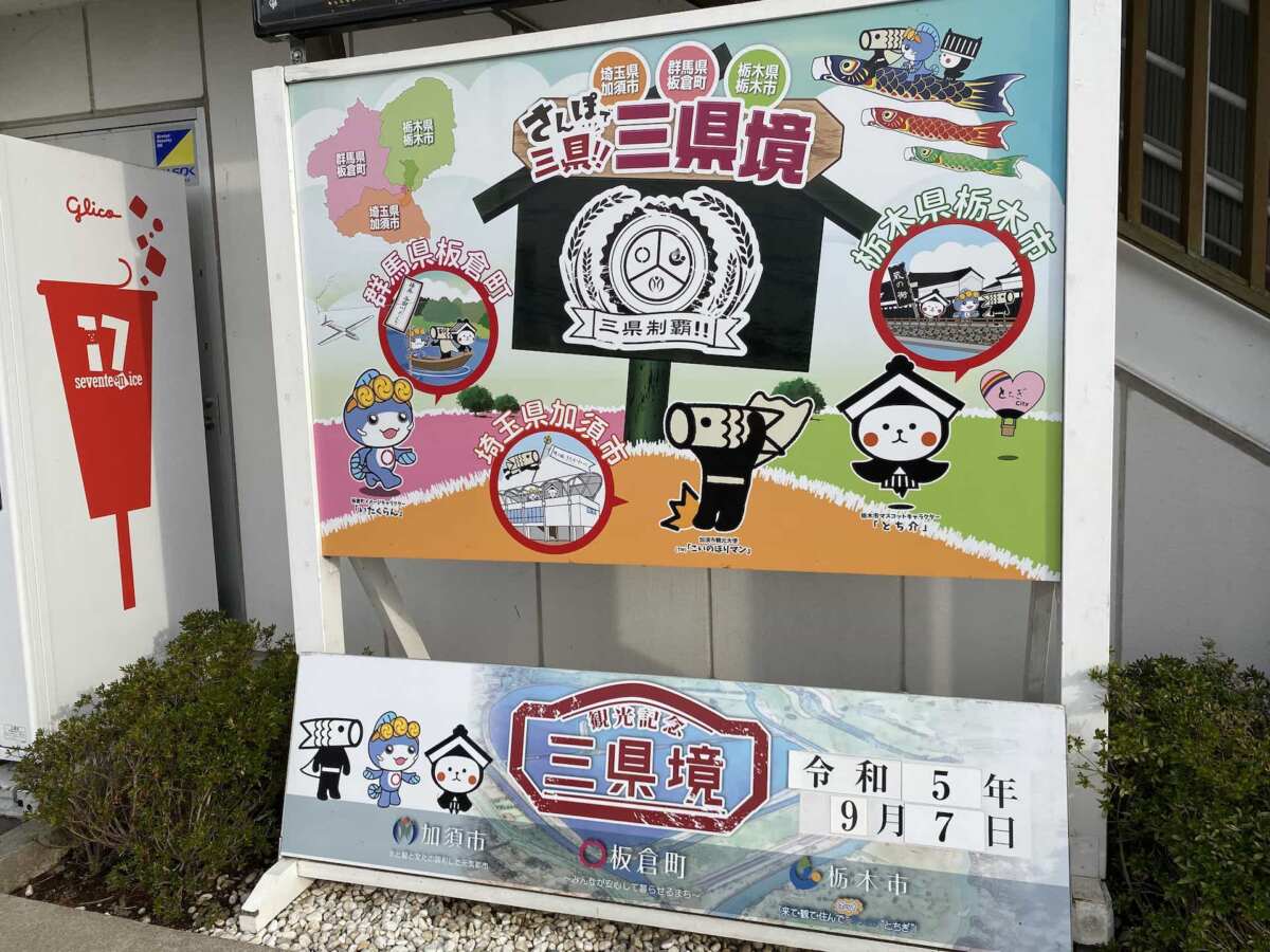 栃木県栃木市、群馬県板倉町、埼玉県加須市の『三県境』が徒歩5分の場所にあり、三県の中心で愛を叫ぶのもいいでしょう。売店には、それぞれの特産品がならんでいます。