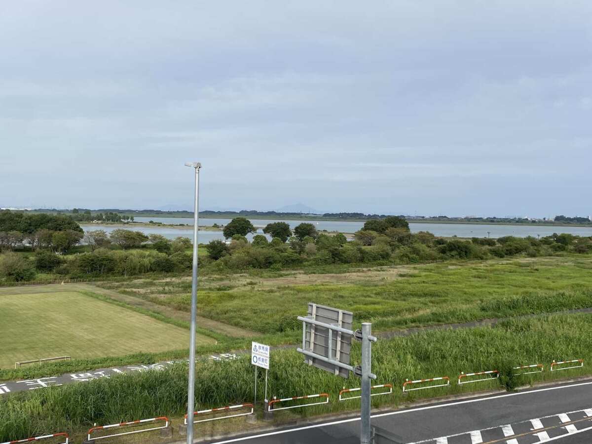 建物の屋上からは、渡良瀬遊水地が見渡せます。栃木、群馬、埼玉、茨城の4県にまたがる渡良瀬遊水地は、面積33キロ平方メートル、総貯水容量2億立方メートルと巨大で、日本最大の遊水地。東京ドーム700個分の広さがあります。