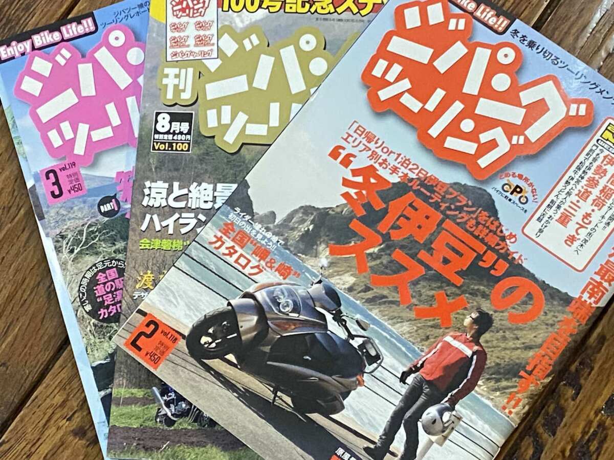 いろいろな場所をツーリングし、カメラマンと撮影した記憶がよみがえり、なんだか懐かしくもあります。インターネットがまだあまり普及していなかった時代、旅するバイク乗りたちにとっては『ジパングツーリング』の情報はとても貴重で、小さな判型の雑誌に地図と情報がぎっしり詰め込まれていたのでした。