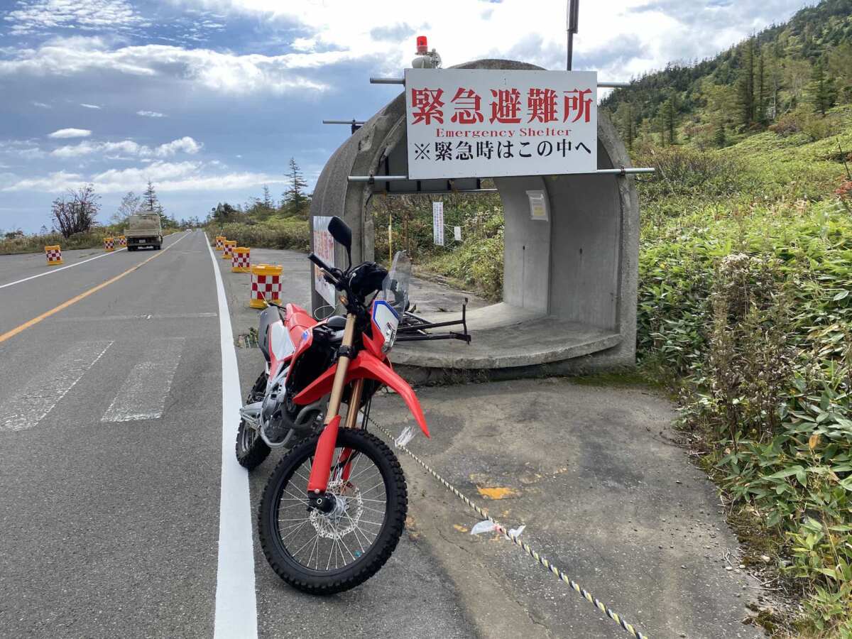 沿道にところどころあるのは、災害時の緊急避難所。噴火時に避難できるシェルターが設置されています。直ちに出発しました。
