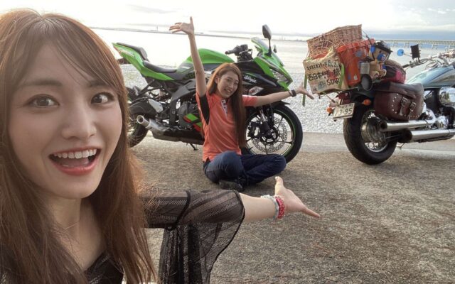 バイク駐輪場ではレースクィーンの五十沢星来ちゃんと愛車と一緒に記念撮影が行われていました!