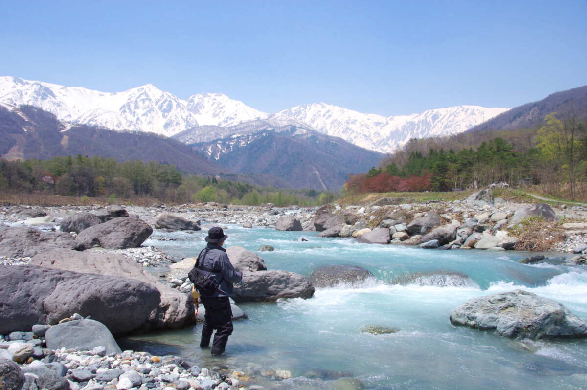▲雪解け水が多すぎて水量強すぎ問題。釣れないことはわかっていても絶景のなかで釣りを楽しむという絵をみんなに見てもらいたいじゃない?
