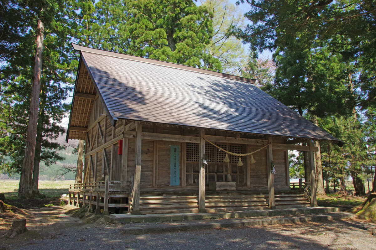 ▲白馬村神城地区にある飯森神社。領主の飯森氏が八方池に住んでいた大蛇を鎮めるために建立したという伝説が残る