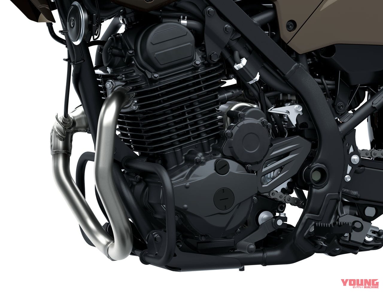 空冷4ストローク単気筒エンジンを搭載。最高出力は18psだが街乗りからツーリング、オフロード走行まで扱いやすく、多くのライダーにちょうどいい。