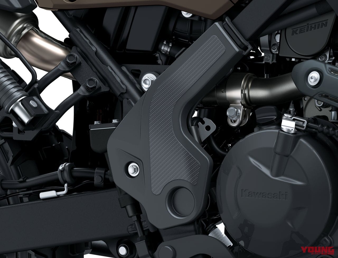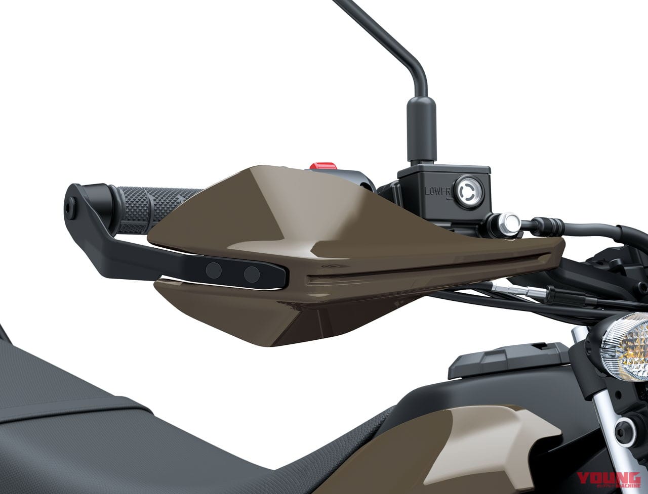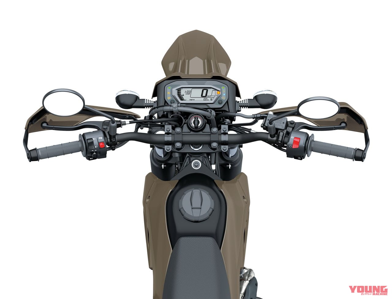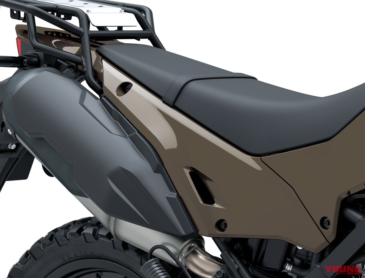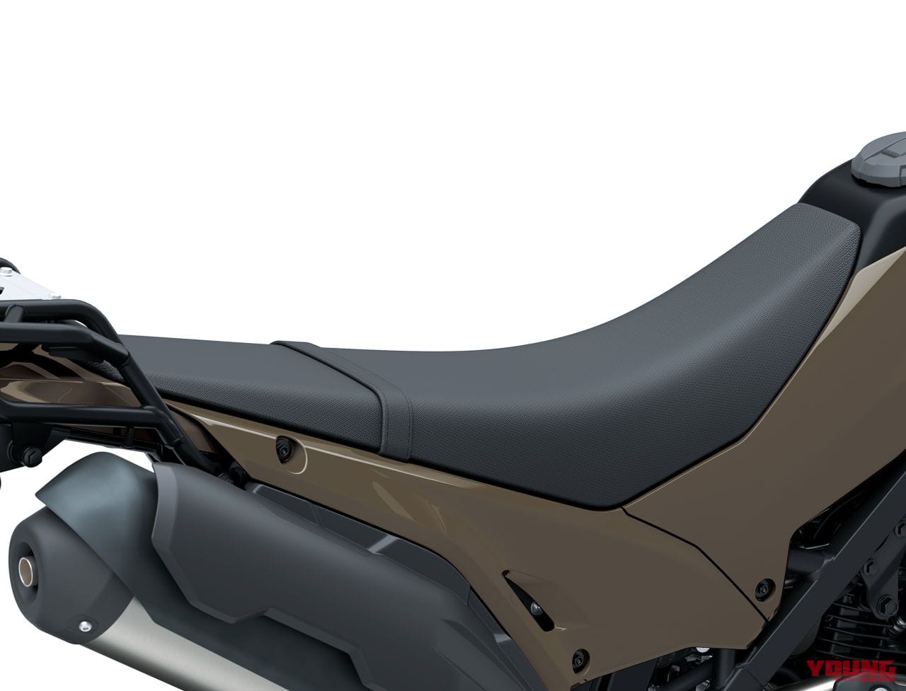 シェルパは同時発表のKLX230シェルパS(2026年モデル)でさらにシート高が825mmまで下がっており、ビギナーや小柄な方向けのシェルパSと、ツーリングなどにガッツリ使いたい方へ向けたDFというキャラクター分けになったと言えそうだ。