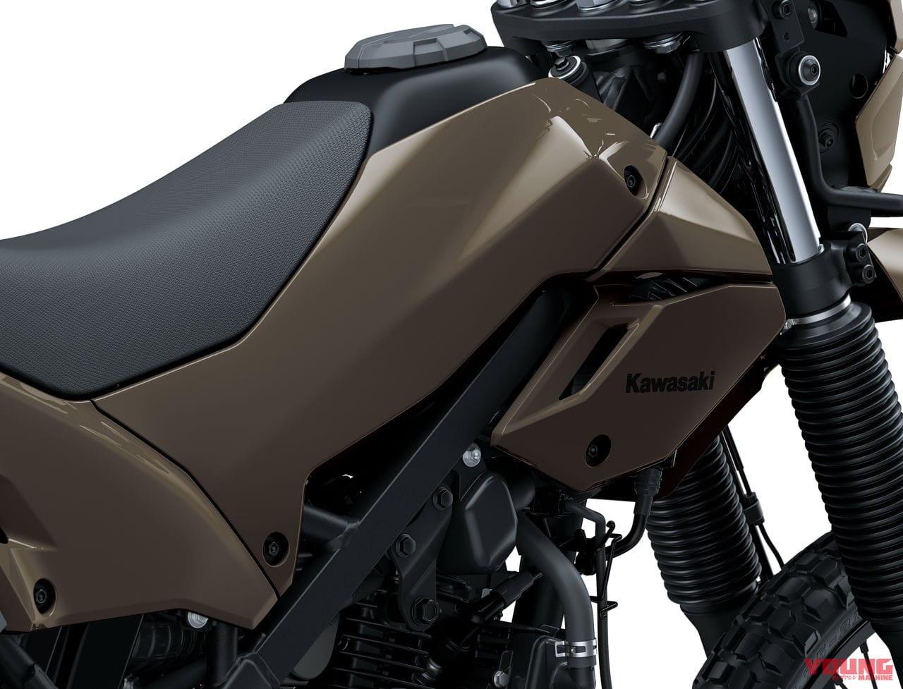 カワサキモータースジャパンは、KLX230シェルパをベースに各種装備を追加したブランニューモデル「KLX230 DF」を2025年9月15日に発売した。シート高は2025年モデルのシェルパと同等となり、新登場のKLX230シェルパSがさらに低シート高になったことで棲み分けはさらに細分化している。