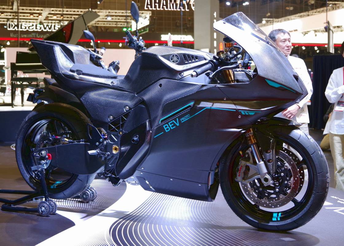 プロトBEVは、外観がまさにYZF-Rシリーズに連なるデザイン。EVならではの発進加速が自慢で、一定の距離まではYZF-R1より速いという!