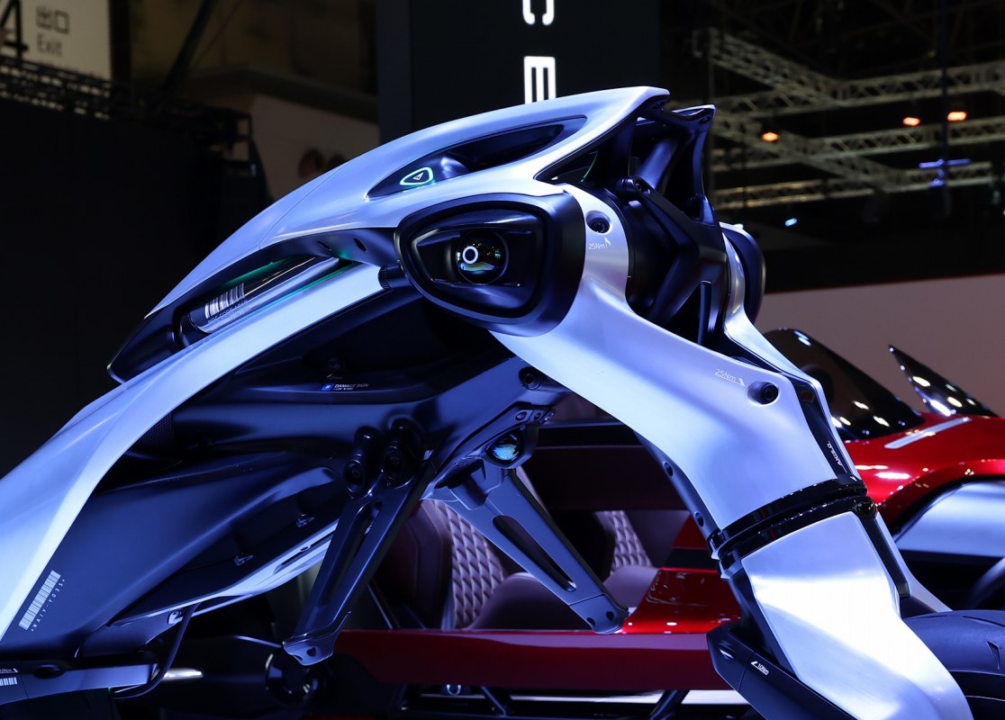 注目したいのは、世界初公開となった電動バイク「EVアウトライヤーコンセプト」。低く長いボディと曲面デザインを採用し、有名な“金田バイク”的な雰囲気がイイ!