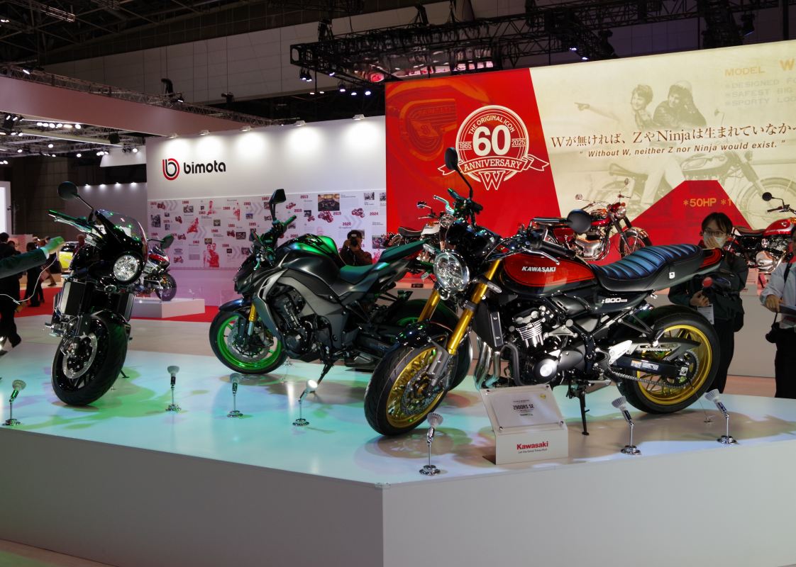 カワサキは、今年で60周年を迎えた“W”のほか、“Z”に象徴される「伝統」と、次世代モビリティを提案する「革新」をテーマに展示。