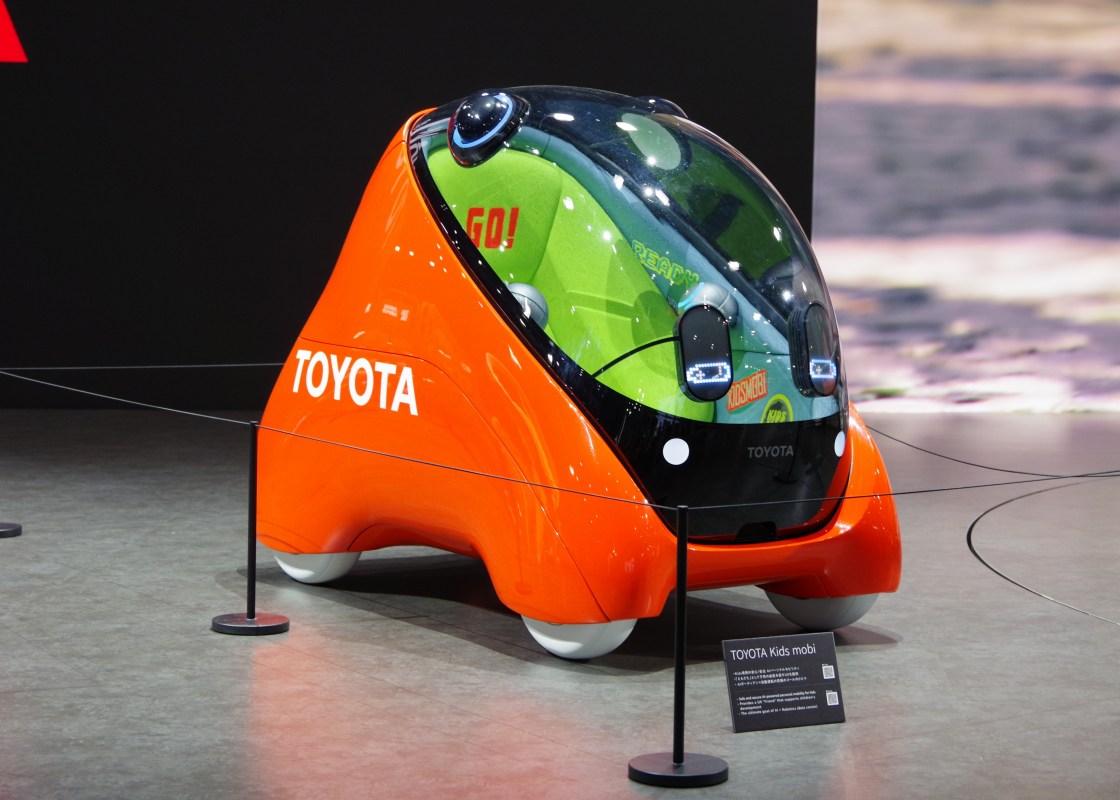 ↑南ホール1階は広大なスペースに、トヨタ、レクサス、センチュリーなどのトヨタ系が出展。写真はキッズ専用の安心&安全AIモビリティ「Kids mobi」。目的地まで自動運転して子供を運んでくれる。