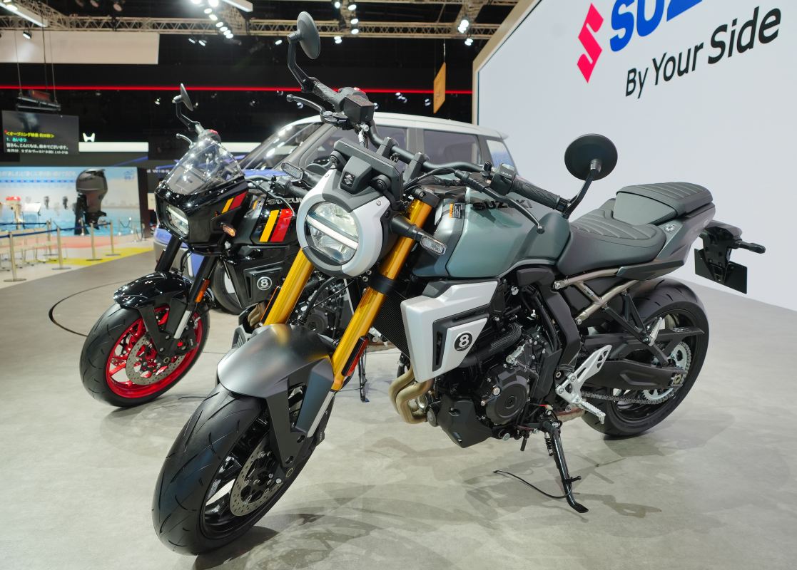 新作のネオクラシック、GSX-8T/TTは既に海外で今夏正式発表。日本での市販予定車として国内初展示された。