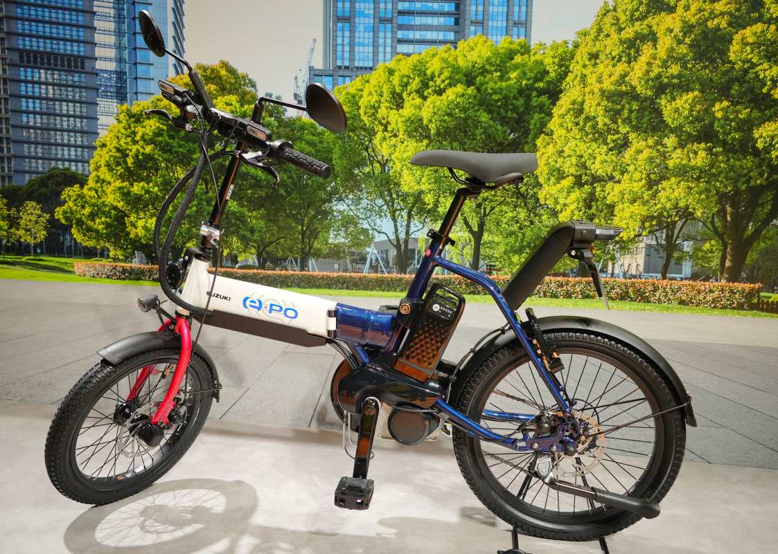 ↑モーター走行もペダルで漕ぐこともできる原付一種相当のE-PO。今回展示された車両は、プロトタイプからさらに進化しており、鈴木社長が2026年内の市販化を明言した!