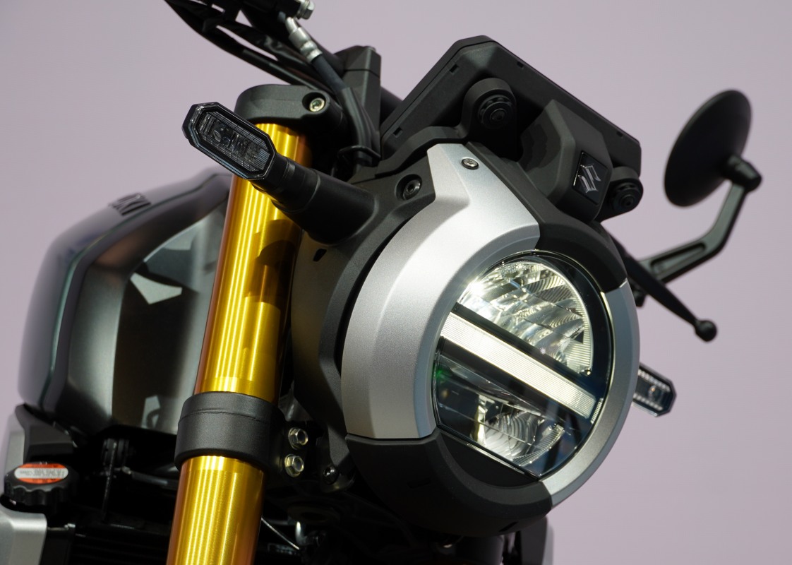 ストリートファイターのGSX-8Sをベースに、専用のLEDヘッドライトや燃料タンクを与え、装いを一新。デザインは1968年に登場し、タイタンの愛称で呼ばれたT500をオマージュしつつ、モダンさを漂わせている。