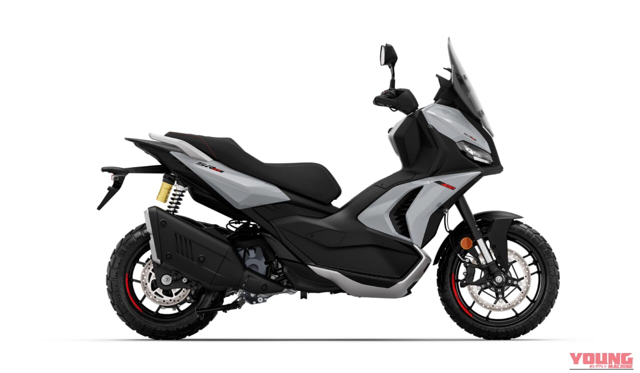 SR GT 400は、ミドルクラスながらマルチパーパスを意識したアドベンチャースクーターだ。街中での俊敏なレスポンスはもちろん、林道ツーリングでも快適で力強い走りの実現を目指している。