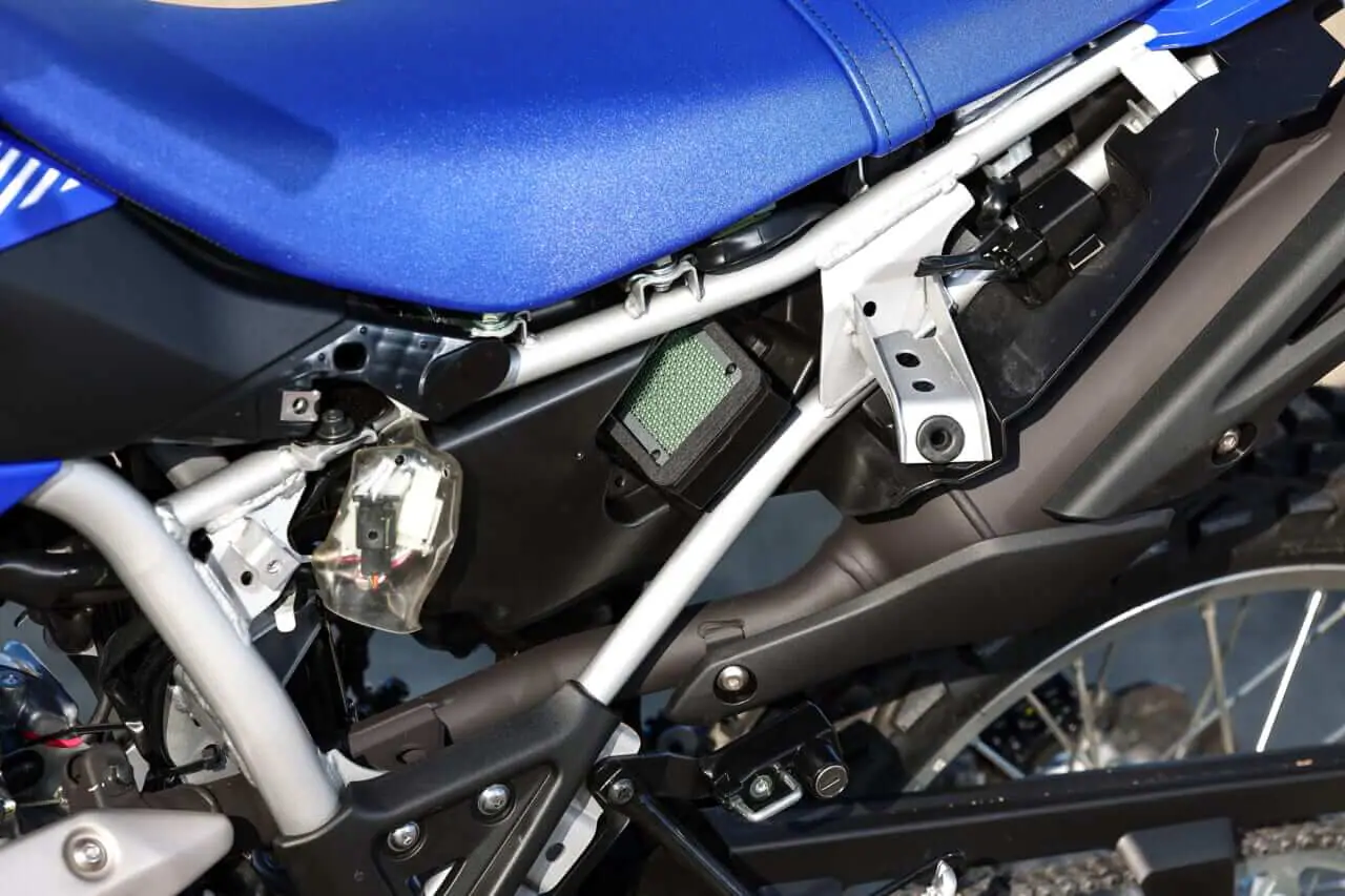 前作(国内未導入のWR155R)でバッテリーが収まっていたシュラウド左内側にABSユニット(フロントのみ)をレイアウト。ABSの装着義務に対応するためだが、バッテリーは車体右側のサイドカバー内側に移された。