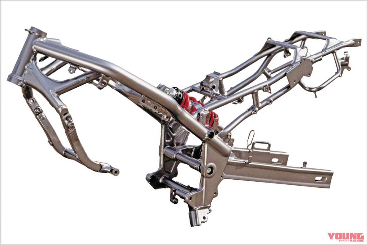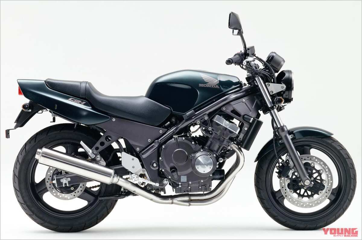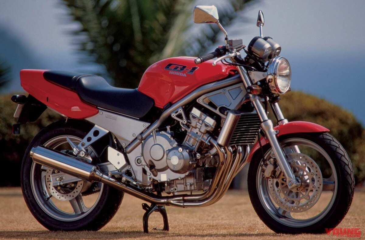 CBR400RRのカムギアトレーン式水冷4気筒に、低中速域でリニアに反応する特性を狙ってポート長の最適化や不等長エアファンネルを採用。バルブ開閉タイミングも変更した。大径の構造用炭素鋼管のツインチューブ型フレームはデザインの要でもあり、新時代のスポーツネイキッドを感じさせたが、人気はいまひとつだった。