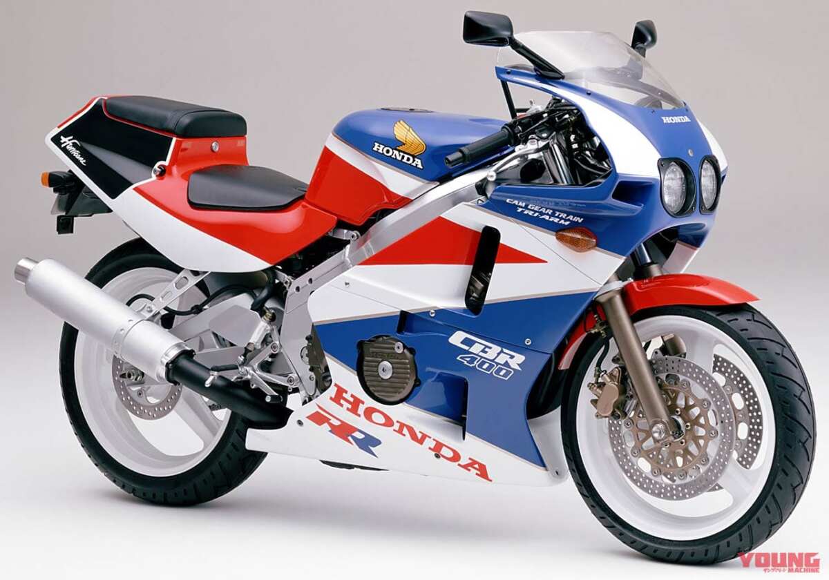 【’88 HONDA CBR400RR|ルーツはレプリカだった】レース技術を投入したカムギアトレーンの水冷4気筒をアルミツインスパーフレームに搭載。プロダクションレースでも活躍した。 ■162kg(乾) 399cc 59ps/12500rpm 4.0kg-m/10000rpm